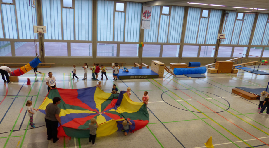 Ziel des Kleinkinderturnens ist es ein fröhliches, gesundes und an den Bedürfnissen der Kinder orientiertes Bewegungsangebot zu schaffen. Dabei wird sportartübergreifend mit Großgeräteaufbauten, Kleingeräten, unterschiedlichen Spielgeräten, Alltagsmaterialien, Bewegungsliedern/ -geschichten und kleinen Spielen gearbeitet.
